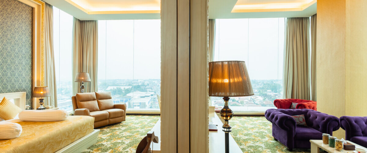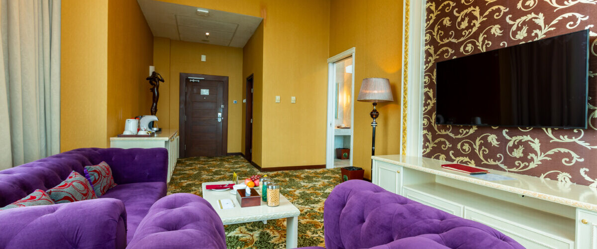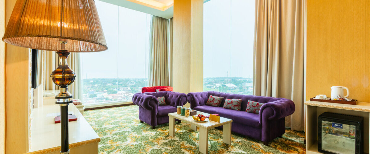 Royal Suite seluas 87 m² dirancang dengan elegan dan tersedia dengan King Bed. Royal Suite ini dilengkapi dengan ruang tamu terpisah, area duduk/sofa, Smart LED TV 55”, Wi-Fi berkecepatan tinggi, brankas, air mineral, kulkas mini dengan camilan dan minuman non-alkohol gratis, fasilitas kopi & teh, mesin pembuat kopi, pengering rambut, bathrobe, serta kamar mandi dengan bathtub dan shower terpisah.