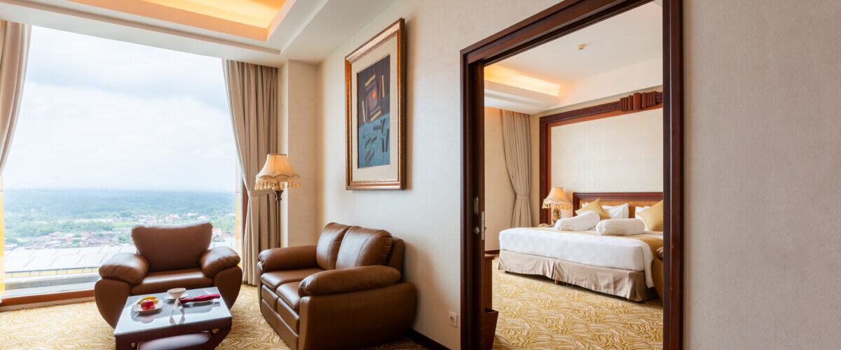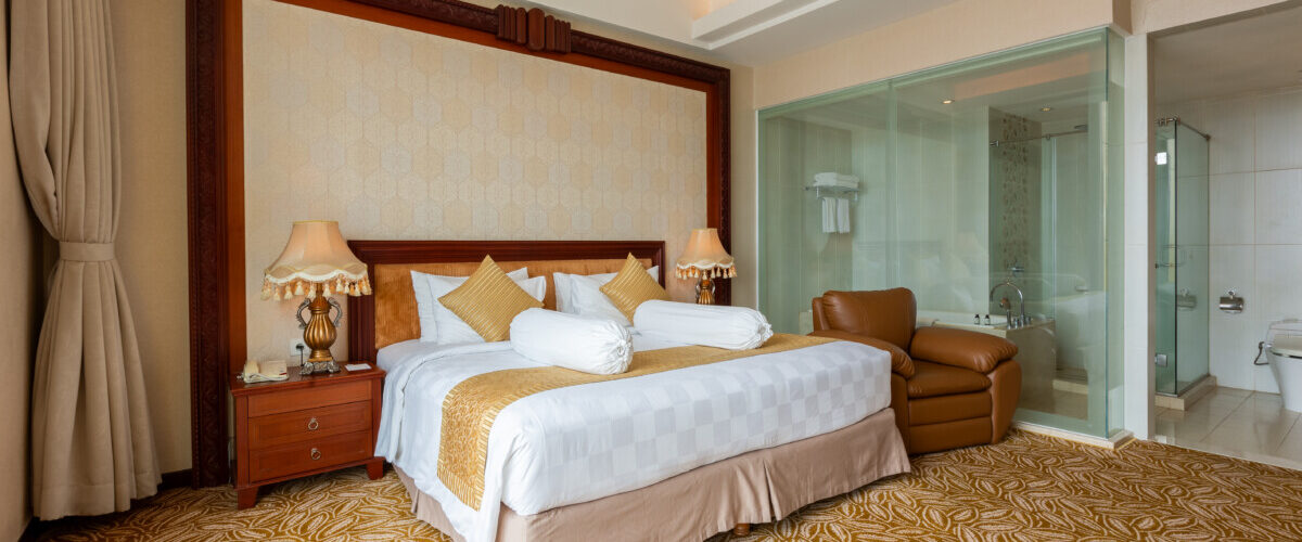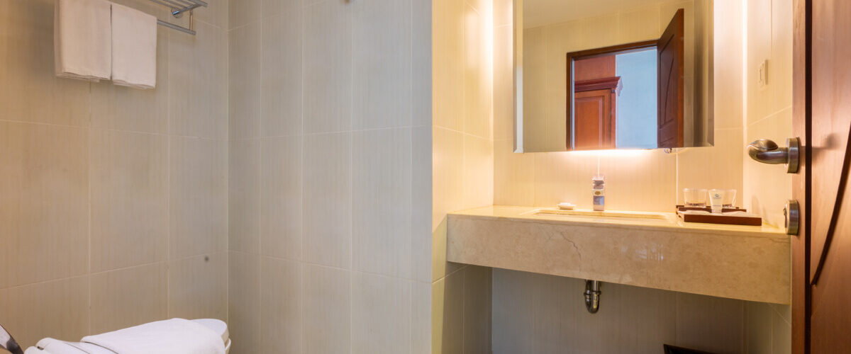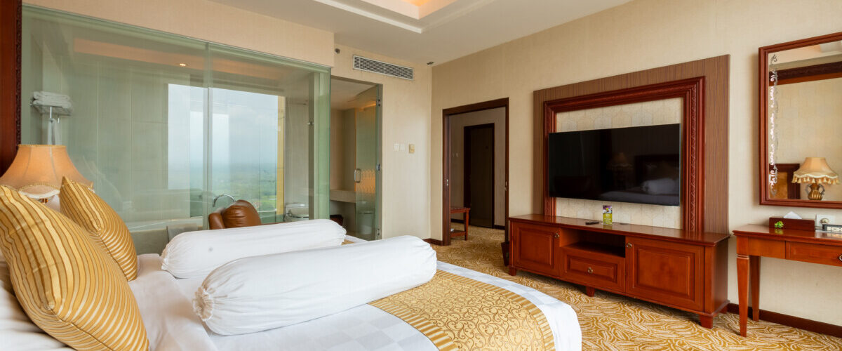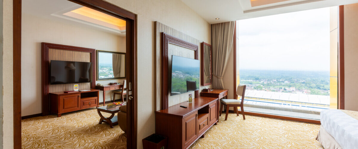 Equipped with Sitting Area/Sofa, 55″ Smart LED TV, High Speed Wi-Fi Internet, Safe Deposit Box, Mineral Water, Mini Fridge with Complimentary Snacks and Non-Alcoholic Drink, Coffee & Tea Facilities, Coffee Maker, Hairdryer, Bathroom Amenities, Bathrobe, and Separate Bathtub & Shower Room.