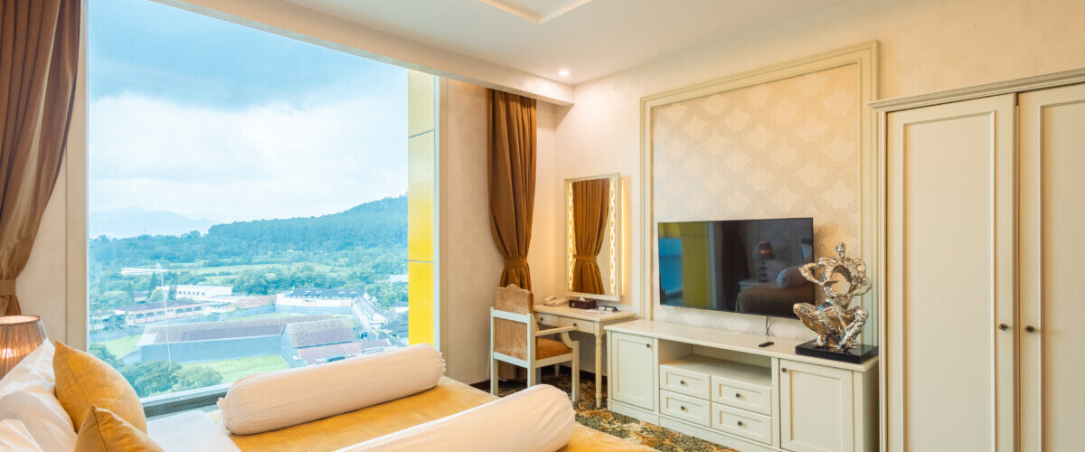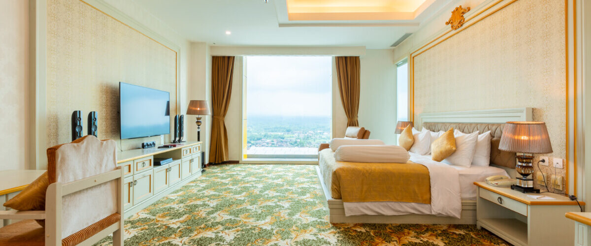 The 158 sqm Presidential Suite is perfectly designed furnished with sophisticated décor for comfortable and convenient stay surrounded by stunning views of nearby volcanoes.
